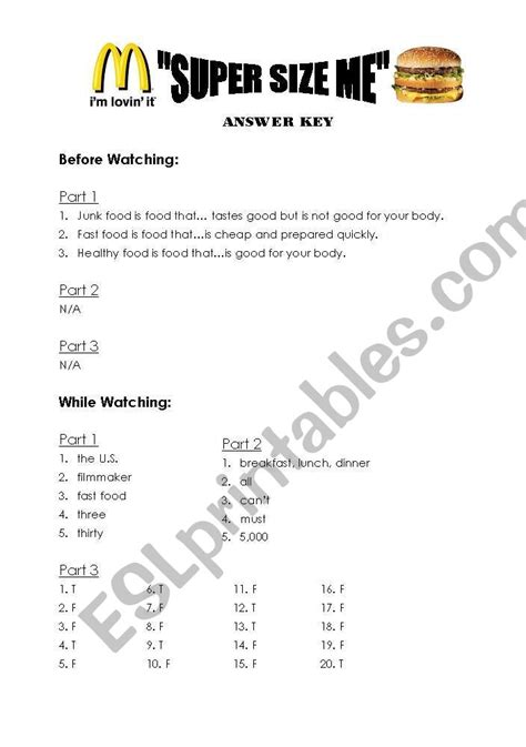 Read Supersize Me Worksheet Answers Kindle Editon